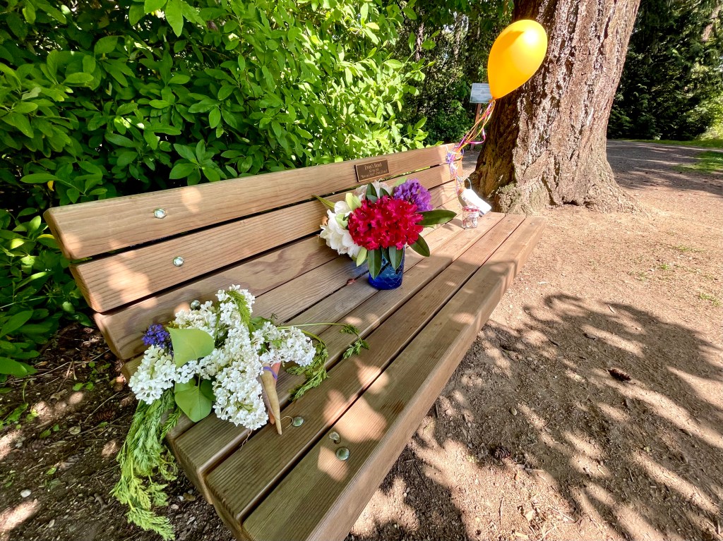 Maggie Tai spied me at the crosswalk near Ewan’s bench.
